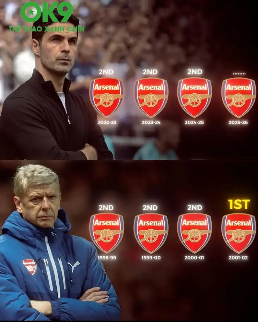Thực tế, Arsenal đã ngậm ngùi về nhì tại Premier League trong suốt ba mùa giải vừa qua, điều này khiến không ít người đặt dấu hỏi lớn về bản lĩnh của Pháo thủ trong những thời điểm quyết định. Cả mùa giải 2023 và 2024, đoàn quân của Arteta đều đánh mất lợi thế dẫn trước vào tay Manchester City, còn mùa giải trước đó, Liverpool đã tận dụng triệt để việc Arsenal sứt mẻ đội hình vì chấn thương để vượt lên.