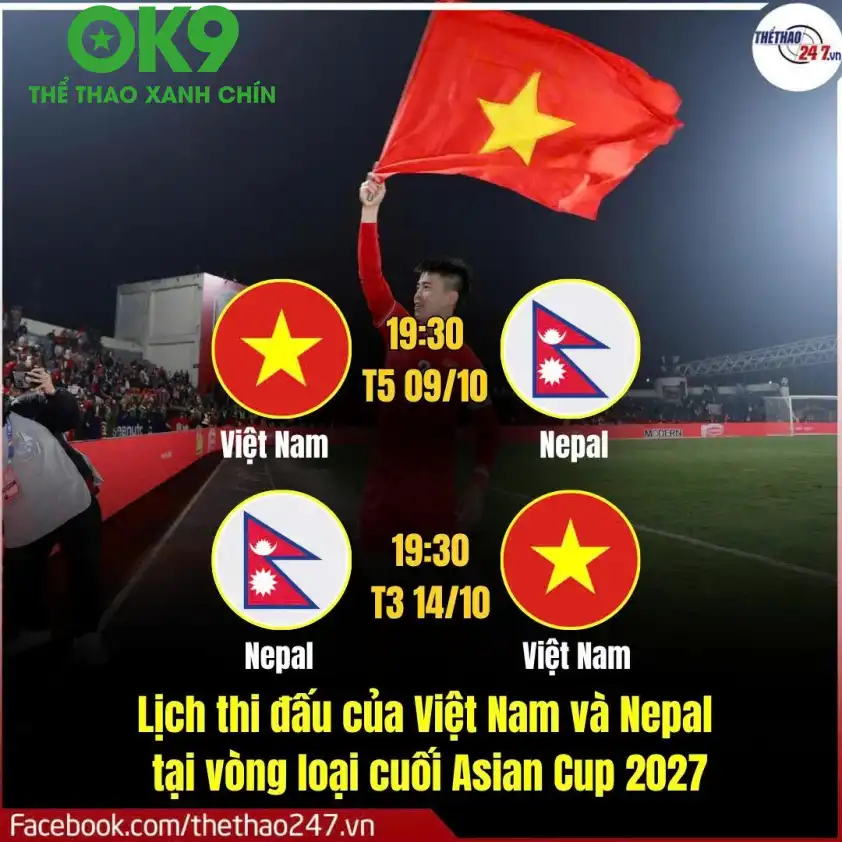 Một thông tin cực kỳ đáng chú ý là cả hai trận đấu đều sẽ diễn ra trên sân nhà của Việt Nam, do sân nhà của Nepal không đáp ứng được các tiêu chuẩn của AFC. Sau hai lượt trận đầu tiên, Nepal đang “đội sổ” với hai trận thua, ghi được vỏn vẹn một bàn và để thủng lưới đến bốn bàn. Đây là một cơ hội không thể tốt hơn để đội tuyển Việt Nam phô diễn sức mạnh, đồng thời tạo điều kiện cho lứa U23 bắt đầu hành trình khẳng định vị thế của mình trong màu áo đội tuyển quốc gia. Anh em thấy sao? Có “kèo thơm” nào không, chia sẻ cho OK9 cùng “xõa” nào!